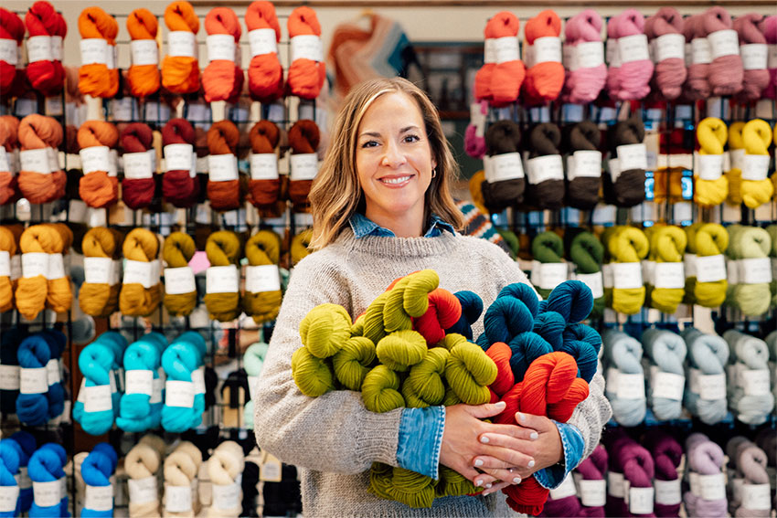 A dedicated knitter turned yarn maker, Jill Zielinski brings out the natural beauty of sheep’s wool and puts her design skills to work at North Bay Fiber. During lean times she turned to knitting to calm her thoughts. Now, with the support of the Michigan SBDC, she is turning wool from West Branch into skeins of hand-dyed beauty and weaving together the strands of her community.