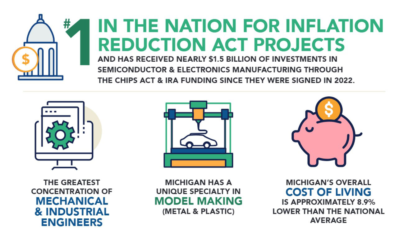 Companies choose to invest in Michigan for a variety of reasons, but chief among them is the consistent support they receive from Team Michigan, including the Michigan Economic Development Corporation (MEDC) and its many partners at the local, regional, and state levels.