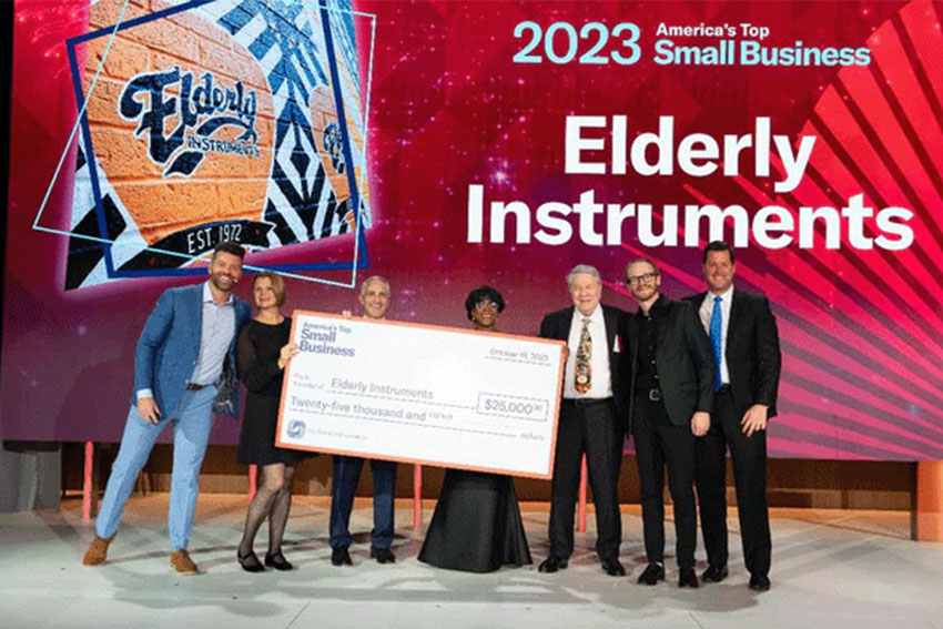 Even after over a half-century of service, Elderly Instruments continues to garner attention locally and nationally. The business was recognized as one of the 2024 Michigan 50 Companies to Watch by Michigan Celebrates Small Business, and in 2023, the U.S. Chamber of Commerce named Elderly Instruments as America’s Top Small Business out of over 15,000 applicants. At the awards dinner and gala, Lillian was presented with a grand prize check for $25,000.
