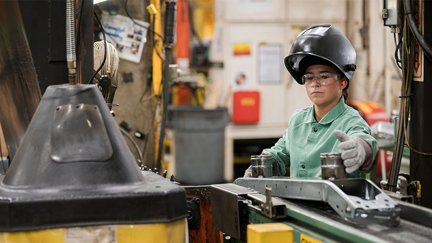 Josh Ramirez and Katie Williams-Ramirez (pictured) were two of Shape Corp.’s new recruits, a husband-and-wife duo who moved to Michigan from Illinois. Katie became a new production supervisor, while Josh became a material handler and has since transferred to a more highly skilled role as material handler/shipper. Another new hire, Bruce Smith, moved from California to become a Shape Corp. production, control and logistics team leader.